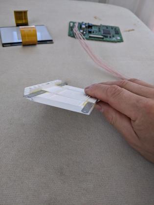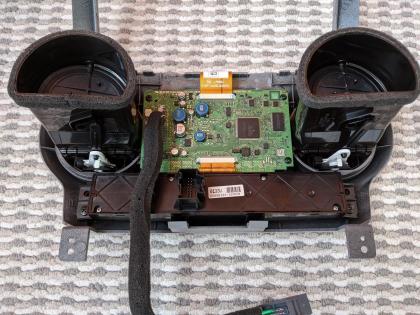 Штатный дисплей очень в огромном корпусе, сам дисплей очень большой относительно рабочей поверхности экрана и сильно выпирает поэтому не получилось его упаковать как можно ближе к краю воздуховода. Подсветку дисплея укоротил и отшлифовал так же как и было в стекле поверхность куда светят светодиоды. От платы отпаял разъём и удлинил его проводами чтобы не возникало давление разъёма на всю конструкцию в воздуховоде и не получилась огромная конструкция. На фото в обратном порядке как крепится вся конструкция. Сегодня оболью краской рамку, покрою лаком и после выложу фото как всё это смотрится в автомобиле.