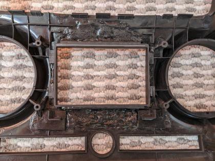 Никакая андроид система не сравнится со штатной, во первых БК я уже отвык от него пусть и жёлтый и убогий дисплей но он показывает температуру, часы и сколько бензина в баке я зря это всё убрал. Пришлось купить опять CD30 MP3 вместе с дисплеем, так как свой продал. После покупки прокачал мафон как описано здесь: https://www.drive2.ru/l/5736366/ Потом заменил штатный усилитель 09400036 на TDA7564B звук вообще мне очень понравился, на крышу поставил антенну с усилителем, запитал её от магнитолы выход AR там появляется +12В при включении. Радиостанции ловит просто супер никакой андроид нахрен не сравниться. После этого стал колхозить дисплей, так как решил убрать верхний козырёк дисплея короче всю шишку сверху и на 3D принтере напечатать более плоскую крышку а на неё уже поставить какой нибудь дисплей цветной с навигацией. Рамку которую мне этот долбаный профессионал запоганил делал почти месяц, очень толстые слои клея а местами пластик растворял в дихлорэтане и заливал пустоты. Рамка конечно была после покраски не в таком состоянии как я выложил фото, но покрашено было отвратительно слоёв наверное 10 краски и сверху толстый слой лака. Рельефы рамки капец как слились и выглядело как сплошной кусок гавна покрытый лаком. А попытался отскоблить но всё равно получилось коряво, если у кого-то хватил сил и терпения реанимировать могу отправить. Там все чётко воздуховоды не мешаются, на фото кажется что плата выпирает но всё в норме. Перед тем как зафиналить грунтовкой я поставил всё подключил и проверил и только после этого, покрыл тонким слоем грунта и отдал этому Ван Гогу. Фото платы после перепайки.