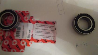 Слева KOYO япония,справа Корея. Корея смазка уже лежа дома начала плакать , поэтому ставить не стал.Мерсовский вроде FAG 6062RS 30/55/13.