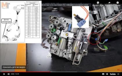 спасибо за ссылку, забыл про эту схему а ведь именно там и указан этот датчик. поискал еще в ин-те и нашел сейчас даже краткое разьяснение : "Датчик температуры жидкости является частью внутренней проводки АКПП, по сути это термистор. Блок управления подает на датчик 5 вольт и измеряет падение напряжения в цепи. Когда трансмиссионная жидкость холодная, сопротивление велико, и блок управления регистрирует высокое напряжение. Когда жидкость нагревается до нормальной рабочей температуры, сопротивление уменьшается и, как следствие, уменьшается напряжение. ЭБУ использует эту информацию для обеспечения четкого переключения и своевременной активации блокировки GDT во всем диапазоне рабочих температур. Если блок получает неверные значения от датчика, он запишет ошибки P0710 или P0711 (TCM-0045)" даже зависимость сопротивления от Т указана, так при 50 гр R=1379oM, T=60 R=992 oM, T=100 R=314 oM, T=120 R=192 oM, T=140 R=124oM и т.д. но вот его партномер (артикул) пока так и остается секретом. и похоже что этот весь жгут вместе с датчиком внутри АКПП. нашел видео разборки коробки, там видно где этот датчик, он действительно внутри АКПП, просто так его не поменять (