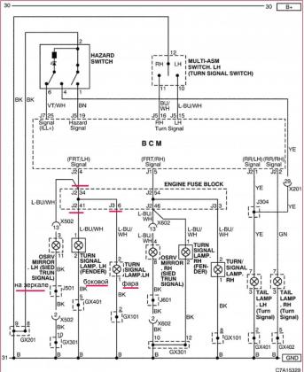 14. на прошлой неделе увидел что перестали работать поворотники с левой стороны. Проверка ламп, предов - все ОК. Ор-сом показывает, что "левая сторона" ВСМ не активна при попытке пользования. Ошибок ор-сом не выявил. На узко специализирующемся на опелях СТО подтвердили что вероятно ВСМ накрылся и что это тяжелый случай из-за "сложности" прошивки другого ВСМ в авто. Типа нужен "отвязанный" от предыдущего авто ВСМ и возможность доступа дилера опеля в облако производителя. Как помню у нас нет более официальных дилеров, а значит путь тупиковый, хотя попыток пока не оставил. ищу спецов.... Стоит этот ВСМ под центральной консолью под блоком управления кондиционера ,добраться не сверх сложно, но тоже время требует и навыков, что бы что то не отломать. Не нашел спецов на СТО которые взялись бы сделать обманку. В гаражах наверное есть умельцы, но контактов нет с ними Ладно. Т.к. авто жены и ездить по большому городу без поворотника стремно временами и не культурно ) в выходной залез в гараж с авто сам. За 10 часов выявлено и сделано: 1) переключатель подрулевой работает нормально, земля поступает на контакт 15 ВСМ. 2) в блоке предов в моторном отсеке на разъеме J2-34 и J2-41 земля!!! 3) на разъеме J3-6 связь с +лампы в поворотнике в фаре, при этом не удалось выявить с чем соединен в блоке предов этот контакт (прозвон всего блока предов ничего не дал). Похоже что соединение/перемычка между конт (34+41) и конт 6 внутри верхней части блока предов сгорело. Причину пока не выяснил, но выясню в ближайшие выходные, есть наметки ) 4) задний левый поворотник работает от отдельной цепи от передней части (вот уроды, все чтобы трудностей "не было" у людей) проложен с правой стороны авто 6) собрал и подключил схему на основе реле поворота 3-х контактного от жигулей, установил "это" под торпедой рядом с рулем 7) для случая если удастся оживить или заменить ВСМ все сделал через диодные развязки. типа вынул реле из колодки и все пошло работать в штатном режиме. Жесть, эти современные авто напичканные электроникой (((