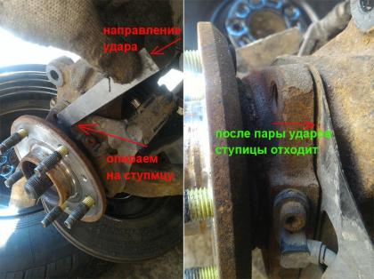 и так ступица TORQUE арт. PL946 снята, сразу же увидел что именно из-за нее такой стук и отклонения. качество у этой ступицы - дерьмо. Перед установкой новой ступицы (JAPAN PARTS, арт. KK100002) вынул датчик АБС и закачал туда шприцом смесь из Mobilgrease XHP 222 и трансмиссионки вязкостью 85-140 в частях 2 : 1 ( в стакане взбить, употреблять согласно рецепта :) , получилась смесь с великолепной адгезией к металлу. В ступицу влезло 40 гр, шприцевал, а потом вставлял датчик АБС как поршень и поворачивал внешнюю часть ступицы. Вместо датчика можно использовать цилиндр диаметров 8-8,5 мм. Если первый раз демонтаж и монтаж ступицы занял 3 часа, то сейчас уложился в 1,5 часа. еще раз обращаю внимание -используйте запаску для откручивания и затягивания гайки ступицы из-за большого момента 208 нм, только поставив колесо на землю удается быстро демонтировать и затянуть эту гайку. А также для демонтажа закисшей ступицы надо ударами повернуть ее вдоль оси, ее основание не имеет никаких выступов, поэтому легко проворачивается, ну а потом уже начинаем ее выбивать на себя (мне это не потребовалось, ступица была "свежей" и потребовалось только ударом повернуть вдоль оси и поддеть отвертками) Решил также смазать и другие ступицы. Если с передней все нормально- снял диск тормозной и добрался до датчика, аккуратно его вращая и вытягивая вынимаешь, то в заднем колесе пришлось не только снять диск, но и отпустить колодки ручника, что бы добраться до датчика. И датчики сзади очень-очень плохо вынимаются, будьте осторожны нельзя их отклонять от вертикали, сломаются! Дальше процедура такая же- закачиваем-продавливаем- вращаем! И!!! датчики перед/зад по размерам идентичны, но датчик переднего привода имеет короткий провод для подключения. Т.е. задний датчик можно использовать на переднем приводе без проблем!!, а вот передний на зад поставишь, но не подключишь, не хватит длины провода, придется паять (наращивать).