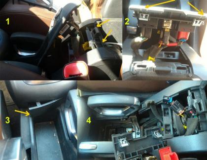 Разъём AUX не работал, попытки засунуть туда штекер приводил в лучше случае в щелчкам в динамике. В связи с этим купил разъем стерео и решил заменить. С размером разъема я угадал чуть дальше об этом. И так, сначала отжимаем 2-е скобы (на рис 1 и 2 желтыми стрелками указаны) и вытягиваем весь блок вверх, однако полностью он не выйдет, т.к. этому мешает 2-я заглушка ( см. рис 3), ее (после снятия эл.разъемов прикуривателя, выключателей подогрева и AUX) отжимаем сбоку как указано стрелкой, а потом и сверху и вынимаем. После этого весь блок с прикуривателем, включателями подогрева можно вынуть. Вынув этот пластиковый элемент можно увидеть внизу блок управления подушками безопасности, на нем надписи артикул 96866798 и "HC8UY1B1W". Теперь мы добрались до самого блочка разъема AUX. Он крепится 2-а винтами к снятому нами пластиковому элементу (винты № 1), и также имеет винты № 2 которые соединяют 2- е части этого блочка. Сняв блочок с пластикового элемента и разобрав его на 2-е части мы видим внутри плату с разъемом 3,5. У меня этот разъем полностью был разломан, не знаю, что туда совали итальянские гангстеры, но cломали они его полностью. Плата имеет маркировку C105 AUX (АХО -813В), S/N 97T63B98AU. Как написал выше, я купил разъем стерео 3,5 мм и он почти совпал с разломанным. Почти - потому что-то сами контакты оказались толще и пришлось высверливать больший диаметр отверстий в плате, а также 2-а контакта были чуть смещены на 1-2 мм, что потребовало создание также эллипсов вместо кругов под контакты + один контакт на нем оказался не нужным и не в том месте и я его удалил. Также на плате размещены 2-а сопротивления с маркировкой 220. Но удалось все аккуратно припаять и собрать. Собрав разъем и соединив 2-е его части (рис 1) вставляем его в посадочное место и собираем всю конструкцию в обратном порядке (без каких либо затруднений). Выбираем с помощью кнопки FM/AM нужный нам режим AUX, подключаем провод и… музыка появилась!