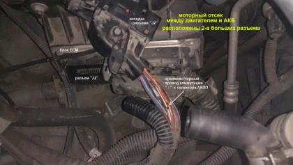 появилась эта ошибка в разделе АКПП (ор-сом) и никак не хочет исчезнуть. ОР-сом скинуть ошибку не удалось, не помогли и снятие клеммы с АКБ, а также разъединение разъемов ЕСМ в моторном отсеке и сочетания этих способов. Согласно TIS это "Прием неправильных данных из ECM. Условия занесения кода неисправности: Прием контроллером КПП из контроллера ЭСУД в течение 4 секунд недействительного сигнала о данных контроллера ЭСУД...." ECM- блок управления (ЭСУД), расположен в моторном отсеке между двигателем и АКБ (см. фото). Ор-сом также показывает в разделе "АКПП" - включена передача 1 и никак ее не меняет (см. фото) ни в движении, ни при стоянке. также в этом разделе есть коэф. проскальзывания ГТ- показывает "-32", а при нажатии на газ (в т.ч. в режиме "Р") поднимается до "0" и все дальше не идет. Как помню этот коэф. у меня был и под 200, хотя могу и ошибаться. На движении авто пока никак это не отразилось, разгон, движение и торможении нормальные (субъективно), больше никаких ошибок нет. Что посоветуете? куда залезь и что сделать? (не хочется с такой ошибкой кататься, напрягает неизвестность)