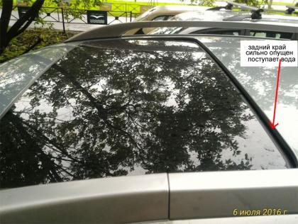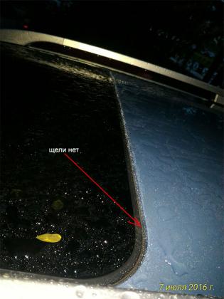 прочитал все 3 темы посвященные воде сверху, сбоку и "снизу". Причина поступления воды через люк, как бы описана (основное забиты водостоки, или разошлись трубки водостоков), но.... Имею 2-а раза сильную течь от дождя при стоянке авто (люк электрический). Т.е. прихожу к авто после работы, а из плафона водительского льется вода и внизу конечно же вода. Но это только 2-а раза, а дождей было больше и такие же по силе. Осмотр люка, примыканий, резины визуально не выявил дефектов. Но задняя часть люка как бы опущена относительно крыши ( см. фото) и имеется щель, так у всех или это какой-то (какой?) дефект механизма?