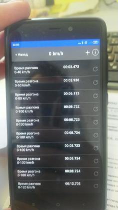 Измерял ELM- Car Scanner. Там кнопочка есть -замер скорости. Берет сигналы с мозгов, начало движения определяет сама. А так чего -я и сам охренел :))) Но спешу заметить что очень много денег и сил в мою сарайку вложено. Дорога - обычная трасса, где снег, где лед, где асфальт. одно только что ровная вот