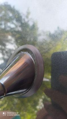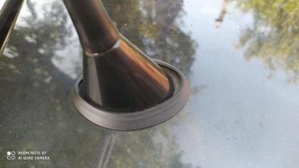Не прошло и 50 лет, как готов ответить :))) Сначала начало появляться пятно на обшивке потолка. Думал течет из заднего крепления правого рейлинга. После сьема рейлинга выяснилось, что у нас крепеж не на сквозных через крышу болтах, а на приглепанных к крыше скобах, на которых уже закреплены болты. Т.е. течь из-под рейлинга может только в случае трещины в клепке. На всякий случай промазали шовным герметиком, и в этот момент обратили внимание на пятна от воды в центре задней полки, и обнаружили вот такое: Резинка уплотнения штатной антенны как будто взорвана изнутри. Предполагаю что виной всему химия. Понятно было, что надо ее менять. В поиске запчастей подсказали ссылку на дром, со статьей, в которой говорили что вроде бы подходит "прокладка для основания антенны BSG 90-995-023" за 150 рублей и ее полный аналог "прокладка для основания антенны Lex PR-5975" за 214 рублей. Вот старая и новая резинки в сравнении, до снятия оригинала еще теплилась надежда..... Вот стикер, который находится на оригинальной антенне, может быть по нему кто-нибудь сможет подобрать прокладку правильную? Вот размеры оригинальной резинки Купленные мною новые резинки, понятно, являются полными аналогами, и по их получению стало понятно, что они мне не подходят, но было принято решение колхозить, поскольку течь внутрь салона не радует, а удастся ли найти оригинальную резинку пока непонятно. В общем сваяли временное, постояннее чего, как мы знаем, нет ничего :)))) Вот размеры прокладки для основания антенны Lex PR-5975 Для замены были удалены три клипсы крепления потолка у верхней части заднего проема, и в открывшемся пространстве был обнаружен разьем и провода, уходящие в нишу крыши. По всей длине заднего обреза идет прямоугольный усилитель, вокруг него ребра жесткости, поэтому доступ к гайке антенны имеется через окно примерно 12 на 12 см, и за квадратным профилем высотой не менее 4 см. После тщетных попыток измерить размер гайки штангенциркулем из головки на 19 был изготовлен авторский ключ. Ну очень не хотелось разбирать крышу и боковины для откручивания одной гайки :))) По факту в запарке после разбора забыли померять гайку, но она на 17 или 18, потому что головка на 19 вполне позволяла работать с ней, усилие там достаточно небольшое, ну и кувалдой стукнули по разрезанной головке, уж извините :) После установки конструкция выглядела вот так; Последний штрих колхоза - черный прокладочный герметик: Теперь буду очень благодарен тому, кто скажет номер родной прокладки под мою антенну, ну а пока вот такая галошка у моей антеннки. Хотя разборка оказалась прямо нетривиальной. Надо либо мастрячить нечто подобное нашему ключу, либо разбирать всю заднюю часть машины для откручивания одной гайки. Спасибо тем кто прочитал до конца :)