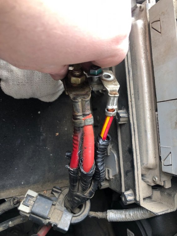 Всем доброго вечера! На днях решил заменить таки родную силовую проводку. Так как я 2й хозяин, условия эксплуатации до меня не знаю, но прочитав наш форум и каптивовский, решено было проводку нового образца не покупать, а делать самому. Старая проводка была из двух половин и прилично обгоревшая. На фото все видно. По итогу купил кабель ПВА 35 и 25 кв. От клеммы АКБ до втягивающего достаточно 1 метра. От клеммы АКБ до генератора пустил по верху моторного щита, также оставил пред на 200А. С штатному минусу на 25 кв добавил перемычку на 25 кв от клеммы АКБ на опору двигателя. Основной итог будем оценивать с приходом холодов, но больше проблем не должно быть. Что могу сказать касательно ТОР - в кольцо с трудом но вошло 2 провода по 35 кв, диаметр по оплетке 12,6 мм, и родные провода на блоки предохранителей. С основному проложен 25 кв, его откусил от старой проводки и переобжал, и провод к на 10 кв к предам перед мотором. Всем легких стартов круглогодично!