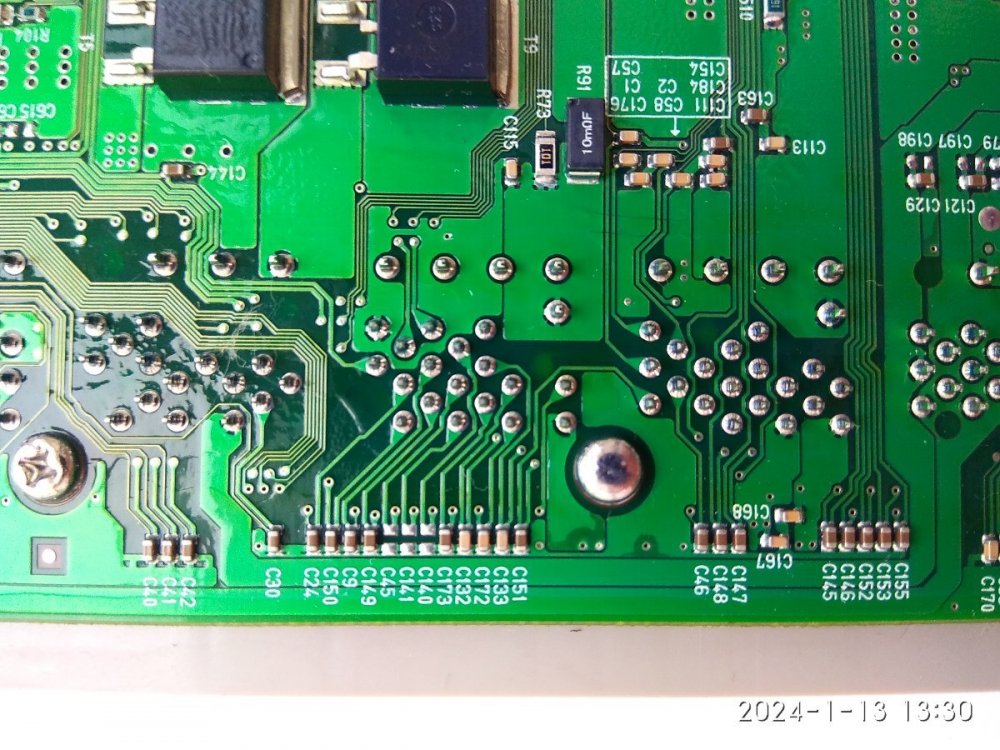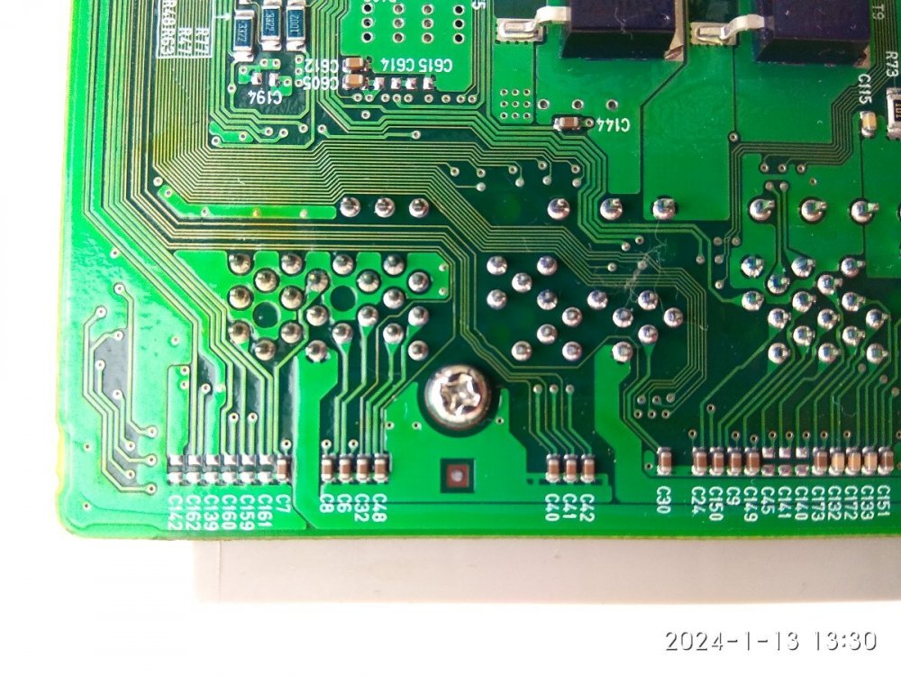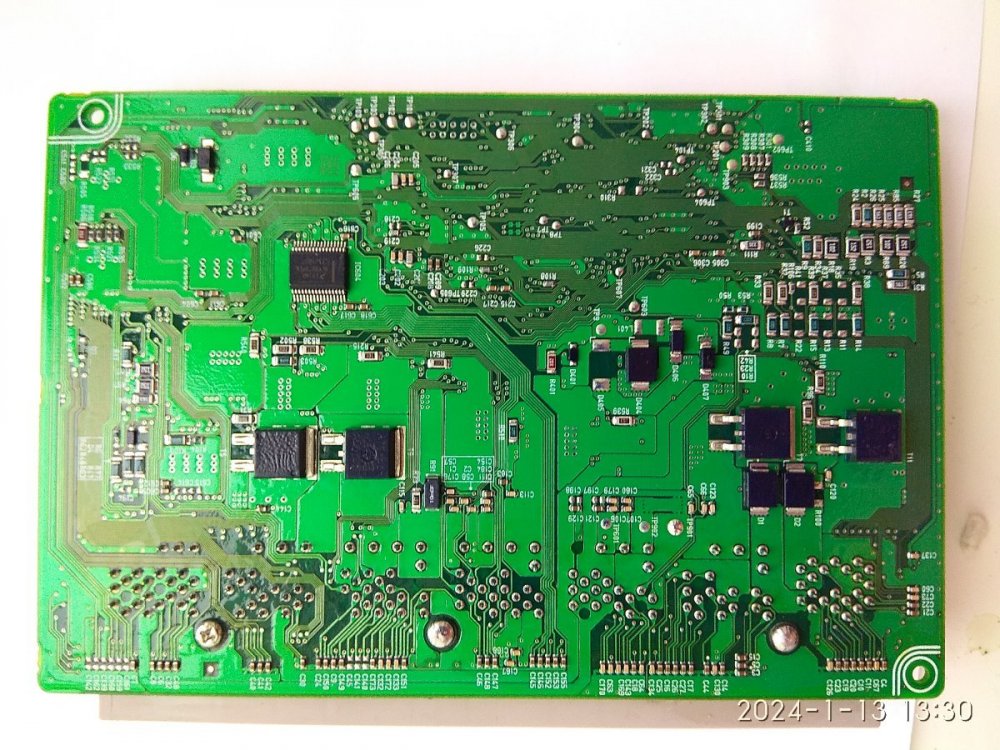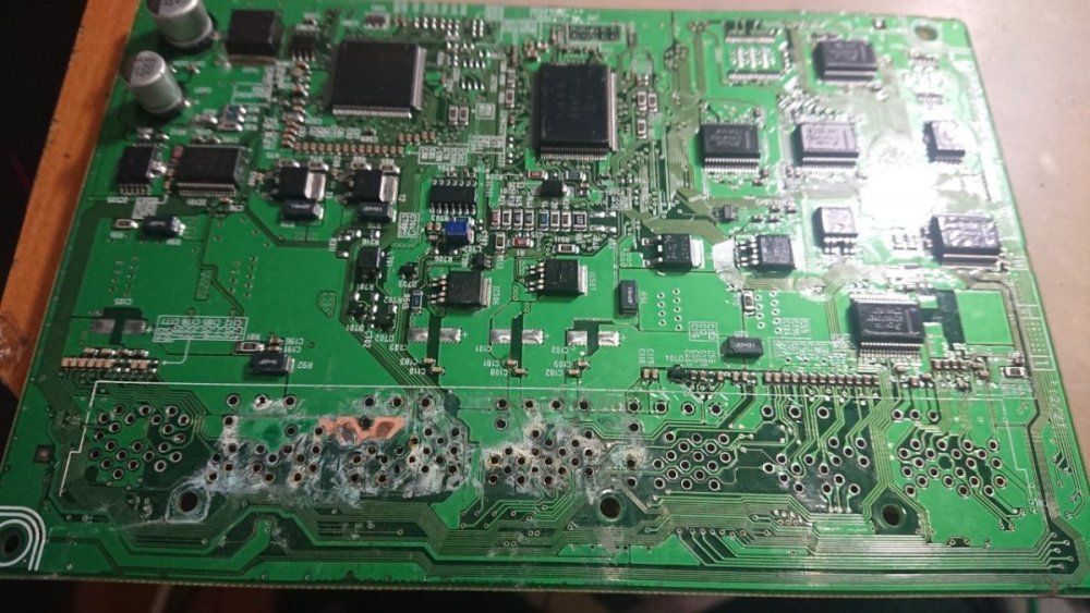 Достал плату ещё раз. Под разъемом на плате, где подключаются черный и коричневый коннекторы, срач и окислы. Собрано старательно, не подберешься. Даже головки саморезов, держащих разъем, заслудили.