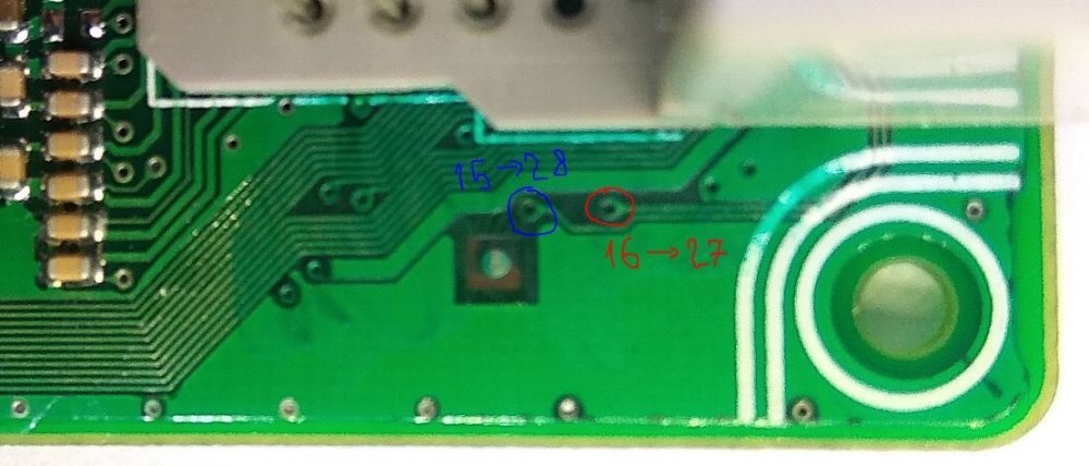Вы от этих точек (переходов) перемычку сделали? У меня переход 16 не работает или где-то дорожка между ним и 27-й ногой. Похоже что здесь осталась проблема.
