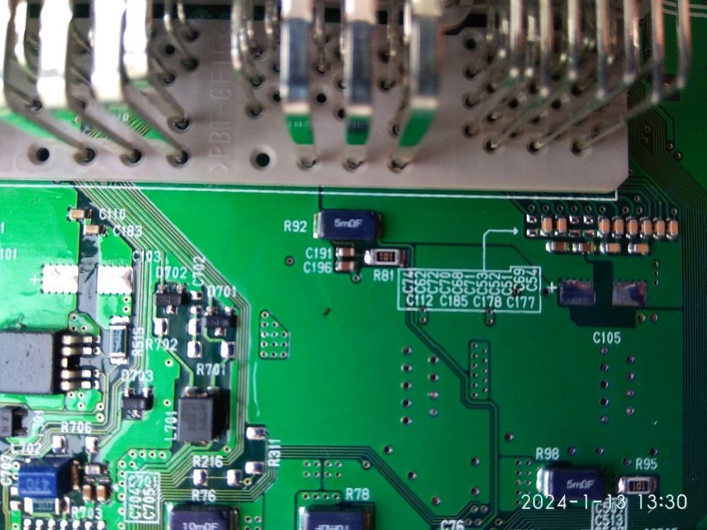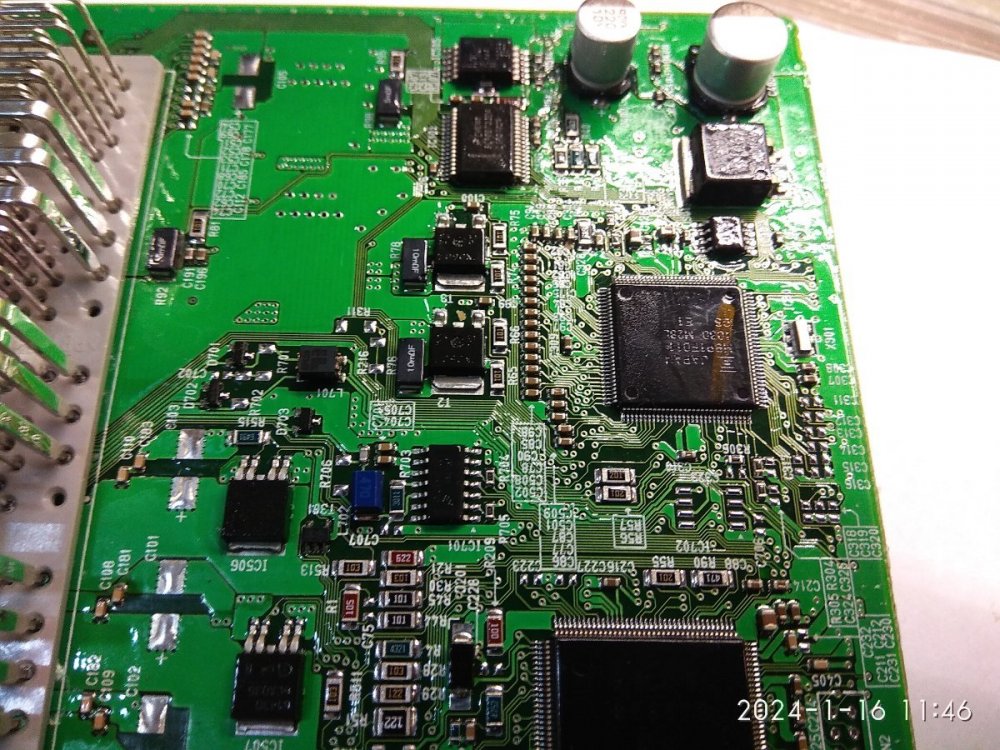 С другой стороны вообще катастрофа. Там где, первые три разъема подключаются (соединение с панелью), вообще все сине-зеленое между платой и разъемом