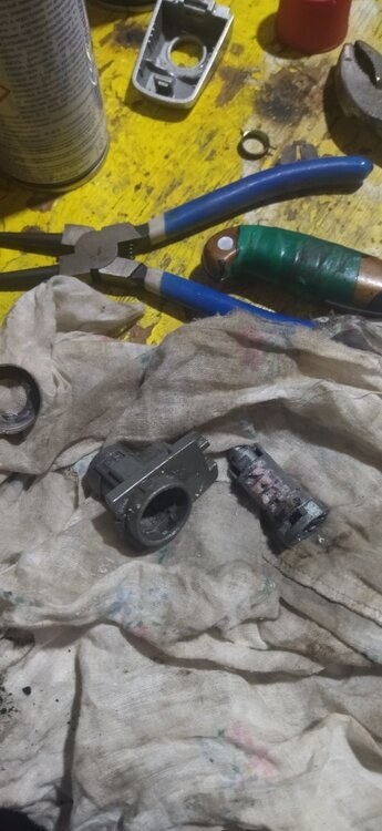 Подниму немного тему. Жена как то подошла к машине, а она не захотела с брелка открываться, ключом тоже не получилось, вызывала электрика взломщика, за 2 минуты открыл машину с помощью ноутбука и взял за это 2 тыщи, вчера решил вечерочком зависнуть в гараже , снял личинку вот такая картина и это скорей всего не соль, как мне кажется это пена от мойки прикипевшая намертво, бензин, вдшки и прочие жижи не помогают, по одной пластинке выбивал молотком, чистил ножом , внутри корпуса чистил этот налёт куском полотна по металлу от ручной ножовки Устал от этой процедуры, как будто мотор снял, всё намазал фиолетовой смазкой, не знаю как она называется, собрал теперь можно открыть авто с ключа.