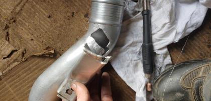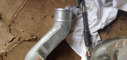 Вот моя ошибка P0101, сразу не увидишь, по весне при потеплении более 16 град. начала появляться машинка с ключиком которая сразу гаснет вместе с двигателем стрелочка вниз-гаснет после остановки, ну достал ви-фи обд, подключил, ну думаю впуск надо осмотреть. Давненько заметил странное потение вместе сварки кронштейна промежеточного патрубка, начал снимать, а кронштейн на месте остался. Почистил, зачистил дремелем, заварил аргоном. Надо будет резинку под кронштейн положить, чтобы смягчало вибрацию. Возможно это из-за нижнего патрубка солерс, он же жесче чем родной?