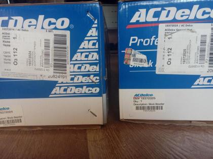 Приговорили к замене передние амортизаторы. Поставил вот такие. Это ACDelco. Едет на них хорошо, очень комфортно. Старые потекли, особенно правый. Вот их фото с наименованиями, это те, которые стояли с завода