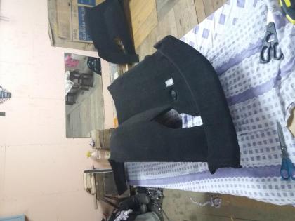 Все просто) Купил 3 погонных метра карпета(ширина в рулоне 1500мм)+ клей аэрозольный. Клеить удобней вдвоем. От середины начинаешь, карпет тянется хорошо потому и все изгибы, выпуклости обтянулись.Можно было конечно и все места под шторку и направляющие под крючки сделать, но я не стал замарачиваться (шторка с новья в гараже упакованная лежит, сетки тоже нет). Отверстия под фонари ножом а под болты паяльником с тонким жалом. Защелкивается все на место без проблем.