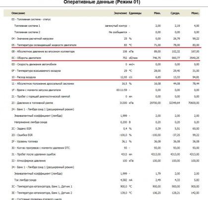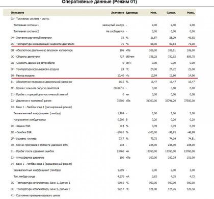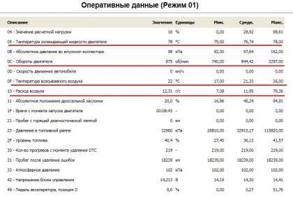 это данные по двум антарам дизельным. Одна только на холостом ходу (смотреть температуру ОЖ и обороты. Вторая - немного погоняли. В зависимости от оборотов мотора расход воздуха (подчеркнул красным). Расход воздуха обычно "грамм в секунду", но в зависимости от настроек можно выбрать любые данные вплоть до имперских единиц.
