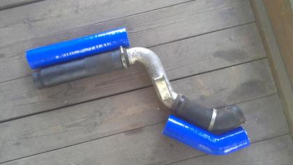 По просьбам выкладываю размеры всех трех патрубков. Искривленные патрубки мерялись по оси до линии изгиба. Верхний прямой: Выпускной искривленный: внутренний диаметр такой же, как и у прямого. Впускной искривленный: Как я уже писал ранее, впускной патрубок, присланный мне, не соответствует по внешнему виду оригинальному, я его менять не стал, тем более, что у меня впускной целый, но похоже, что этот подойдет.