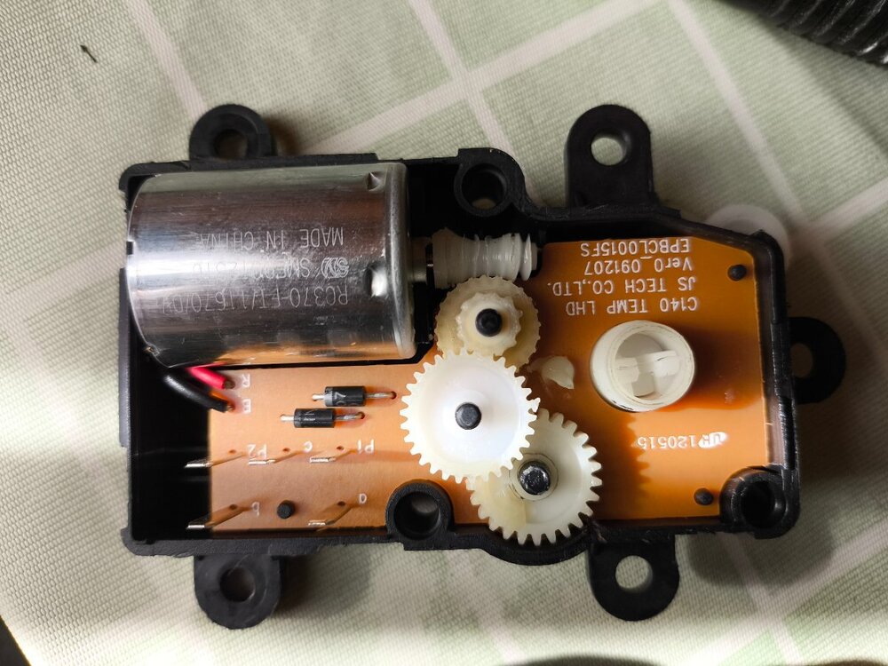 День добрый одноклубникам. Случилась тут интересная штуковина, перерыл наверное все темы, но конкретно по такому поводу как у меня ничего не нашел. Есть отдельные упоминания, а вот чтобы доходчиво разжевано- нет. Итак: перестала регулироваться температура воздуха, что дует из печки, жарит горячим что в авто что в ручном режиме и на поворот ручки регулировки температуры не реагирует. А при снятом бардачке четко видно, что тяга не ходит. Снял я этот привод, который находится, как уже говорил, слева от бардачка в нише ног переднего пассажира, открыл его и увидел, что сочилась пластиковая шестерня червячной передачи, которая насаживается на вал электромоторчика. З D принтер нам в помощь, но и с новой шестерней работы не получилось- теперь привод переводит заслонку в положение "холод" и дует соответственно только холодный воздух. При сборке все шестерни и угол поворота тяги были выставлены в изначальное положение, вроде бы, сейчас уже и уверенности нет. Решил посмотреть на разборках сей привод. Exist даёт его номер 96469260, разборки под этим номером дают внешне похожий блочок, только у него поводок вращается с той стороны, где подключается проводка, а на моем с обратной плюс обозначение С-100. На моем блочке вообще нет децимального номера, написано только С-140 TEMP 12G19A1. Поэтому несколько вопросов для размышления: -можно ли неправильно установить шестерёнки в приводе; - какой в конце концов номер у привода заслонки на дизельной антаре; -чем отличаются блочки с обозначением С-100, С-145 от С-140? Ну и пару фото - со стёртой шестеренкой и маркировкой булочка. Буду рад любым конструктивным мыслям.