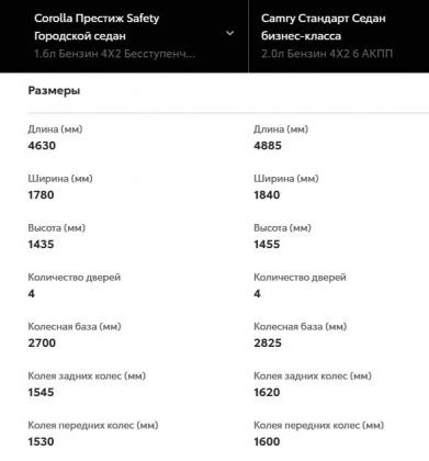Зачем мне бежать с рулеткой (хотя в салоне я был и смотрел, печаль-беда, но Королла 100% теснее Камри), если производитель сам давно все померил рулеткой? Какой шаблон, я уже не раз говорил, что инженегр до мозга костей- пока спеки не проверю, никакие выводы делать не буду. И вам советую. Кто-то конечно может поспорить и подать на Тойоту в суд за обман, но что-то мне подсказывает, что шансы нулевые. ))