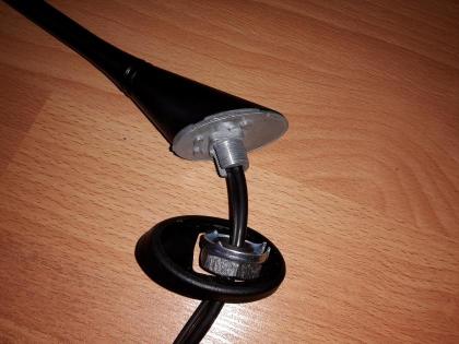 17. В результате чистки от снега снёс антенну капитально. В результате полная замена. Одному закрутить чудо гайку ни как . Пришлось звать на помощь.Также пришлось отрывать родную контр гайку и ставить на новую антенну.С родной не попасть по резьбе втулки. Фото установленной под потолком.