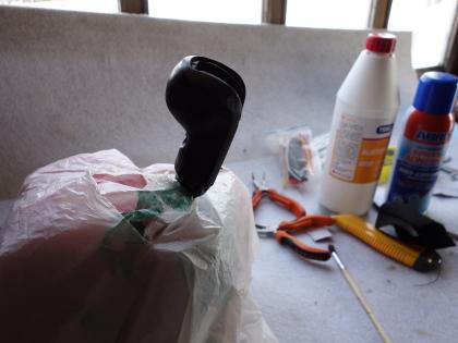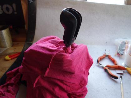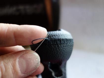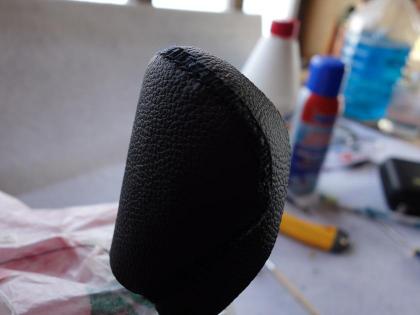 3. Вот как я перетягивал ручку, сначала всю систему разобрал, думал что ее можно как-то вытащить но 3 часа попыток меня убили, я уже хотел её отпилить ручка в нижней части переключения видно что пластмасса влита в металл, верхняя часть я уверен тоже как-то вставлена и после залита пластиком, в общем перетягивать ручку кожей удобнее всего будет когда вытащишь блок АКПП. Кнопку тоже немного укрепил, потому что развалилась. Перед тем как облить клеем, надо заткнуть те места где ходит кнопка. После того как приклеешь кожаную накладку надо протянуть нитки, заводская ручка была сшита строчкой ёлочка, мне она не очень понравилась о том как я сшил расскажу позже.