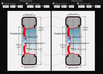 Ну думаю надо подитожить) Тему создал не с проста, искатал летние штатные Dunlop 3 сезона, в принципе еще можно сезон поездить, но вот решил купить новые летние шины. Захотелось купить что-то повыше и пошире, в пределах как говориться допуска. Переварив информацию возникли вопросы, на которые умные люди если знают ответ то скажут. Как я понял есть опыт эксплуатации 235/60/R18 всё в норме. Для сравнения 235/60/R18 больше по диаметру штатных 235/55/R18 на 24мм; 245/60/R18 больше 235/60/R18 на 12мм; соответственно 245/60/R18 шире штатных на 10мм и больше в диаметре на 36мм (статистика) Взвесим плюсы и минусы: Если ставить 245/60/R18 нужен диск шириной минимум 8" но существует вероятность что резина будет задевать. Диск имет вылет 45 если поставить с вылетом 43 или 42 проблема должна решиться, но такие диски редкость и цена высока. Поэтому проблему может решить эксперименты с проставками, но возникает нагрузка на подшипник и это не стоит того. Следующий вопрос, подбирая большую шину я хотел увеличить дорожный просвет и устойчивость на дороге, но люди пишут что кидает на колее, хотя какая колея летом может та которую накатали за зиму шипованными колесами и при первом дожде это может сыграть злую шутку. Возможно увеличение расхода топлива и некорректное отображение о скорости и пройденном километраже, человек писал что размер 235/60/R18 идеально отображает километраж и показания по GPS. Так что же ставить :unknw: Диски есть 8/18/5x115/45 поэтому хотелось бы на них подобрать нормальную резину, я их отпескоструил и покрыл порошковой краской.