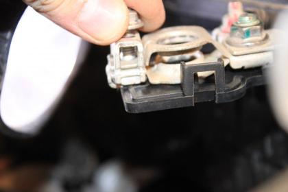 12. Я тут заказал крышечку на минусовую клемму аккумулятора. Номер 4807936. Сразу скажу - не подходит она на такую клемму, как у меня. Плюсовая и минусовая у меня разные, может у кого-то и одинаковые, возможно зависит от того, какие провода с клеммами поставил поставщик проводов на завод. Комплект состоит из двух частей: нижняя часть и верхняя (крышка). Нижнюю часть мне удалось надеть на клемму, хотя пришлось кое-где подпилить пластмасску. Далее нужно застегнуть замок вокруг силового провода. Провод слишком толстый в том месте, даже разогревая феном, мне так и не удалось закрыть. Обмотал изолентой крепко-крепко, как на заводе :) Надел крышку, поставил клемму...начал закрывать крышку и понял что всё зря! Крышка не закрывается из-за: 1. бокового ответвления под гаечкой на 10. Можно его спилить, но я не стал так извращаться. 2. выступающей вверх зажимной гайки. У плюсовой клеммы нету ответвления сбоку и зажимная гайка тоже сбоку, крышка там закрывается хорошо. В итоге я оставил нижнюю часть этого чудо-комплекта, а верхнюю крышку надевать не стал.