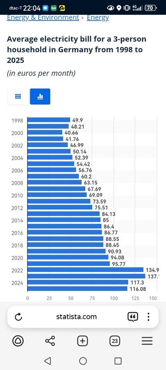 https://www.statista.com/statistics/1346248/electricity-bill-average-household-germany/ Какой то особой стабилизации цен на энергоносители в Германии с периодом в 5 летней не наблюдаю. Рост устойчивый. По остальным категориям (если вам не попросят подписаться) и на промышленную эл. Энергию стабильный и устойчивый рост.