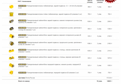Да. Теперь будем смотреть в оба глаза, раз такой подлог случился... По полиуретановым сб в переднем рычаге - проехал 67км, и мне понравилось.. kudan01 был прав.. Жестче, собраннее. Но не сильно жестче - чему я рад) бы сказал, более упруго.. Стуки пропали при прохождении ям. Руль стал чуть тяжелее и лучше возвращаться в "ноль"..Больше информации стало приходить от передней подвески.. В общем, заказал все резинки напрямую у производителя... Жду посылку и буду менять