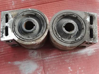 Ну что... Сегодня поставил... Буду пробовать... Снял, которые менял на 45, заказывал на Экзисте родные, "деталь Opel 48 02 543 Сайлентблок переднего рычага задний". Вид у них совсем потрепанный... Трещины в резине, где-то резина отслаивается, отверткой проминаются в радиальном направлении... Это за 25тыс. пробега.. Но главное, нет следов масла! Решил выпрессовать.. И что вы думаете? Когда выпрессовал, увидел, что в сравнении с заводским оригиналом это такой голимый колхоз... Масла там отродясь не бывало... Заводские текли на 45, и внутри еще оставалось.. Делал надрез и оно вытекло. Здесь все сухо..Представляю вашему вниманию фото..Сначала подделка, последние 2 - заводские. Даже не знаю, кто такое гавно делает, и главное, какой подонок под видом оригинальных это продает.. Накатал письмо в Экзист с этим вопросом.. посмотрим, что они ответят.. Кто у них отвечает за оригинальность запчастей? Я же сознательно выбирал оригинал..