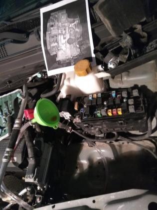 Замена масла в АКПП 6АТ 2.2 CDTI (модель с кузовом С145) самостоятельно Замена произведена на пробеге 50200км. Краткое предисловие. Изучил внимательно статью Jet Li для самостоятельно замены на АКПП 5АТ. После рестайла производитель на Антары устанавливает коробки GM серии 6T. У меня на дизеле 2.2л установлена коробка с маркировкой 6T50 FamZ A. Пришлось поискать в сети про эти коробки. Есть еще 6Т40 и 6Т45, которые устанавливают на Антары и Каптивы. Коробки одного семейства, разница в ширине цепи и еще в кое-каких мелочах. Щупа на них нет. Есть контрольное отверстие рядом с выходом левой полуоси, есть сливное отверстие внизу и заливная пробка. Изучив схему коробки и закупив масло трансмиссионное "ATF DEXRON VI", 1л Opel 19 40 184 в колчестве 8шт, силиконовый шланг Д=12мм и пару воронок – побольше и поменьше, решился на самостоятельную замену с помощью ямы. Контрольное и сливное после снятия защиты предстают взору, а вот заливное необходимо поискать где-то под аккумулятором. Сняв аккумулятор, вы увидите надежную, почти цельную площадку под него, которая на первый взгляд, крепится 4-мя болтами. Но это не так. Для того, чтобы демонтировать эту площадку, необходимо разобрать и демонтировать блок предохранителей и какие-то электроразъемы на левой ее части. Представляя объем предстоящих работ, решил выяснить, где именно находится крышка маслозаливной горловины. Сделал несколько фото на смартфон пространства под площадкой. Нашел пробку. Она и вокруг нее все темное от масла и севшей на него пыли. Попробовал пропустить руку в районе расширительного бачка и достать под площадкой пробку. Ура, получилось! Тесно, но потихоньку выкрутил, достал. Была закручена полностью. Пробка оказалась с сапуном. Через него, по видимому и гнало масло. Пропустил между расширительным бачком и площадкой силиконовый шланг, соединенный с воронкой и заправил его в отверстие. Шланг легко вошел. Отверстие наверное на 14мм. Для заливки масла все готово. Далее, решил проверить текущий уровень в АКПП через контрольное отверстие в районе левой полуоси. Нужен ключик на 11. Открутил – масло потекло ручьем. Закрутил. Подготовил воронку и баклажку объемом 5л, оттарированную с шагом в 0,5л. Открутил сливную пробку, такая же, как и на контрольном, ключик на 11. Масло слил в заготовленную канистру. Получилось около 4,8л. Черное, но без запаха горелого и без серебристых частичек металла, как у одного в ютьюб (говорит, что открутились болты на чем-то вращающемся в коробке и эти болты головками проточили корпус до дыр. Масло из коробки было похоже было на серебрянку). Так что все ОК, только вот объем удивил. Слив все отработанное, закрутил пробку и стал заливать через настроенную воронку с силиконовым шлангом, закрепленным хомутом, свежий DEXRON VI. Залил 4,8л, как и было. Закрутил заливную, закрепил площадку, поставил аккумулятор. Завел авто и прогнал несколько раз по передачам. Затем выехал и проехал около 7км. Возвратился на яму, окрутил сливную и слил лишнее. Получилось 1л. Т.е. для замены надо 3,8 – 4л масла. 1л я перевел зря. Резюмируя по своему авто, могу сказать следующее на пробеге 50 200км Коробка с маркировкой 6T50 FamZ A. Масло в коробке было. Даже с избытком. Поэтому и выбрасывало масло через сапун пробки. Но из двух зол, как говорится, лучше меньшее.. Горелым не пахнет. Включения частиц метала нет. Коробка вела себя нормально – не рывков, не 
