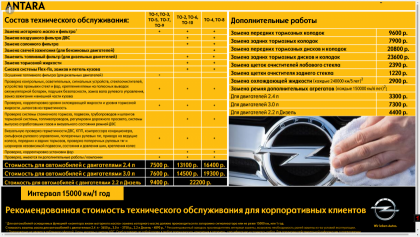 попался список работ и их периодичность. Выкладываю скриншот и ссылку http://www.opel.ru/content/dam/Opel/Europe/russia/nscwebsite/ru/02_Offers_Services/05_Fleet/Antara.pdf