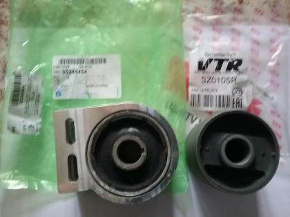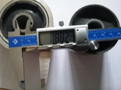 9. Сайлент блок переднего рычага задний. Сравниваем оригинальный гидравлический с неоригинальным простым. Вид двух сайлент блоков. Номер GM/Opel 95248454/4820932 кузов С145, номер неоригинала VTR SZ0105R Размер неоригинала, внутреннего посадочного диаметра. Размер неоригинала внешнего посадочного диаметра Размер оригинала, внетреннего посадочного диаметра. Размер оригинала, внешнего посадочного диаметра. Резина на неоригинале мягкая, что верно, так как задний сайлентблок воспринимает гораздо меньше нагрузки чем передний в L-образном рычаге и он должен гасить все вибрации.