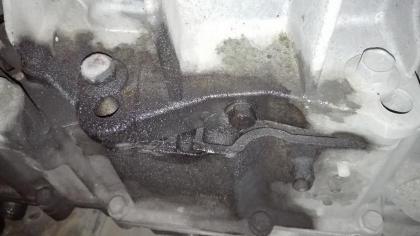 6. Решил проверить уровень масла масло в коробке. Сняли защиту, а там такое. Масло в коробке в норме.