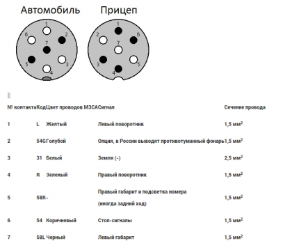 Коллеги подскажите какая распиновка должна быть на розетке, у друга есть прицеп, старый отечественный, без вилки хочу ее восстановить но куда какие контакты выводить не знаю? нашел такую схему: