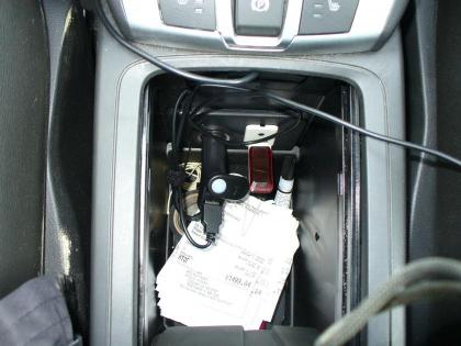 Как и обещал фото. Начало пути провода: Петля оставлена для снятия регистратора (присоска отщелкивается поворотом GSM-модуля на 90 градусов), потом сразу уходит под обивку. Выход из-под центр. тоннеля: Ну и окончательно:
