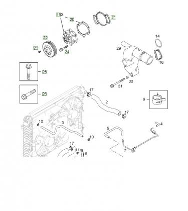 7. хорошо, что только помпу... Киллеры ребята тонкой душевной организации...Шутка. Клин помпы шоль? Если бы как я понимаю гении из од просто тыкнули пальцем в небо если что то течет то помпа при замене помпы слава богу не у них стало ясно что помпа в отличном состоянии но раз уж открутили то и поменяли а течет над помпой выходной канал из блока цилиндров точнее уплотнительная резинка на схеме номер 14 вместе с ней меняется резинка под номером 16
