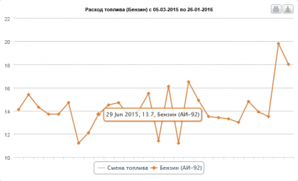 Один бак заправил 95 в самом начале... по трассе 500км на крузе 10.4 (по БК). Следующий бак заправил 92 в самом начале... по трассе 500км на крузе 10.5 (по БК). И на кой спрашивается при разнице в 2Р за литр? Больше не заправлял 95ый, как видно на картинке из моей статистики. Заправляюсь только на Роснефти, только 92м - на ней у нас дешевле всего заправляться... сейчас 92ой 34.90Р за л. После чтения этой ветки второй день езжу на "ручке". Цель - уменьшить расход... ну точнее посмотреть - так ездить явно не буду, но всяко бывает надо узнать как можно сэкономить, например если в Европу съездить... Стиль езды - "тошнотик": старт медленннноо на ручке на 30 км/ч. Потом переключаюсь на ручку и еду только на максимальной передаче, с медленным набором скорости.... Результат (предварительный) раньше на БК было 15.8 - езда на работу по 50 км в день. Сбросил в 0... Сейчас на БК 13.4 !!! Охренеть однако. Впрочем надо дождаться "чекового" расчета, как я писал БК я не верю в усмерть :) P.S. Может он врет из-за шин 235/55R18 хотя, вроде стандартные...?