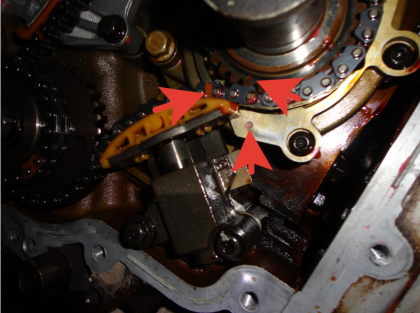 целиком банк 2, стало быть. вот эту цепочку придётся переустановить. либо фазовый соленоид масло на фазовые шестерни не так как надо подает. вот из механических причин могу только это предположить. когда заводили эта цепочка могла на прослабленных натяжителях проскочить зубик, и вся работа на смарку. лично я полностью прокачал масло по системе прежде чем свечи вворачивать. на пенёк кривой стартер и оборотов 50 пока натяжители клацкать не перестали. завелась как обычно с пол-пинка, как будто только что выключил, без ошибок. так и езжу...