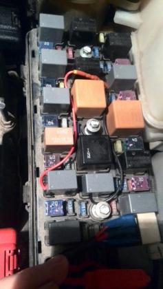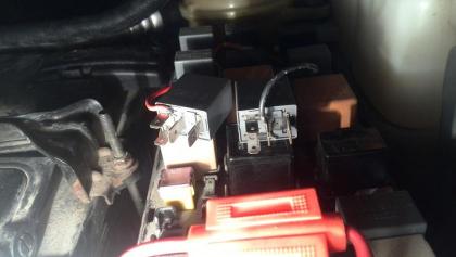 На катушку реле ПТФ с одной стороны приходит напряжение питания при включении зажигания. Вторую сторону садит на массу блок управления кузовным оборудованием когда включаем ПТФ. Вот данная вторая сторона нам и нужна. К данному контакту у меня подходит красный провод. У реле габаритов на одном из коммутируемых выводов висит питание. Второй из коммутируемых выводов через лампы габаритов соединён с массой. Вот он и нужен. К нему у меня подходит чёрный провод. Когда не включены габариты ток протекает через катушку реле ПТФ и через лампы габаритов. Сопротивление ламп габаритов у меня около 1 Ома, сопротивление катушки реле ПТФ около 80 Ом. Поэтому габариты от такого малого напряжения 12В/81Ом*1Ом=0,15В не загорятся. Диод нужен для того чтобы при включении и габаритов и ПТФ вручную не сжечь блок управления кузовным оборудованием т.к. при этом он будет пытаться посадить катушку реле ПТФ на массу, а реле габаритов подаст напряжение на габариты. Получится КЗ. Чтобы этого не произошло стоит диод, который пропускает ток только в одном направлении от красного провода к чёрному. Диод нужен на напряжение не менее 50В, и на ток не менее 0,5А, чем больше оба эти параметра - тем надёжнее.