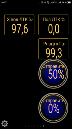 Завалялось в архиве. Управление лопатками турбины, устанавливает положение лопаток на пару секунд на заданную в PIDе величину в процентах. Кнопка 0%: Кнока 50%: До нажатия кнопок: После нажатия кнопки 0%: По кнопке 50% лопатки только до 60% "свернулись". Предпоследний (6-й) байт задает %: 00-FF -> 0-100%
