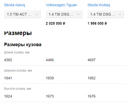 15. Да нет же, скорее всего Карок = Т-рок = Ауди Q2, а Тигуан = Кодиак, так же как и Антара = Каптива Вот здесь сравнение
